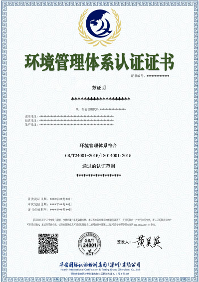 环境管理体系认证证书_