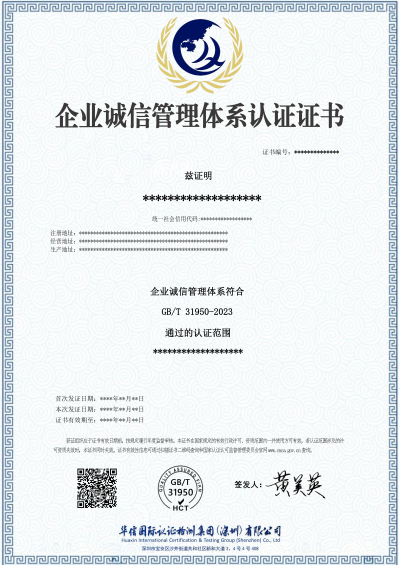 企业诚信管理体系认证证书