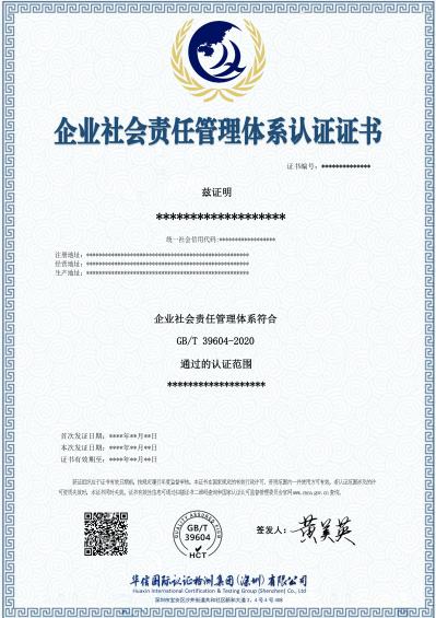 企业社会责任管理体系认证证书