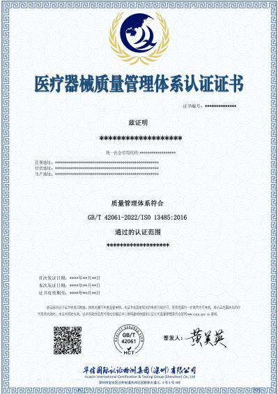 医疗器械质量管理体系认证证书
