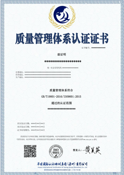 质量管理体系认证证书